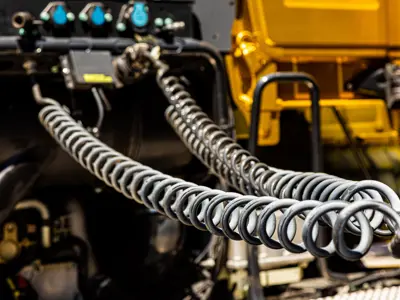 Air brake systems use air pressure generated by an engine-driven compressor. This pressure travels through hoses, reservoirs, and control valves to operate the vehicle’s brakes.